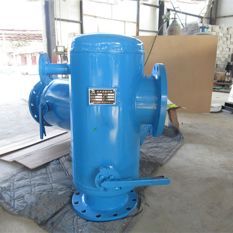 当过滤器工作时,水流导向阀处于开启状态,水流自入口进入过滤器,经滤网过滤到出口,水中污物杂质等被滤网拦截。当过滤器需要排污时,关闭水流导向阀,打开排污阀,水流经滤网前半程过滤,一部分水经过滤后直接流入系统,另一部分水由滤网外侧流入内侧,不断冲刷滤筒内壁上的污物和杂质,并经排污口排出。