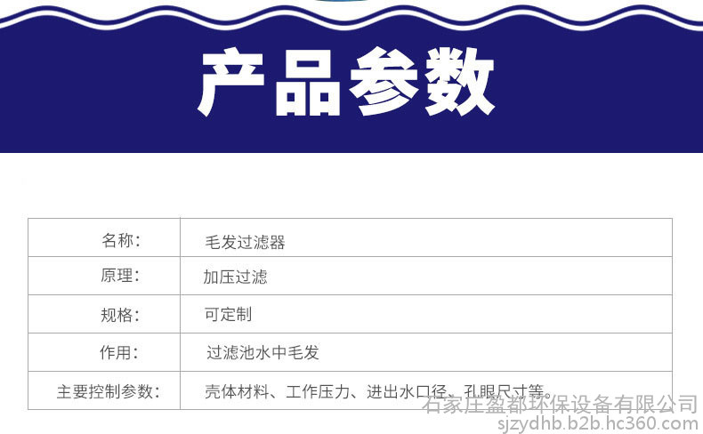 毛发过滤器是泳池循环水处理中必备的预处理装置,主要除去池中纤维、毛发及较大的固体杂物