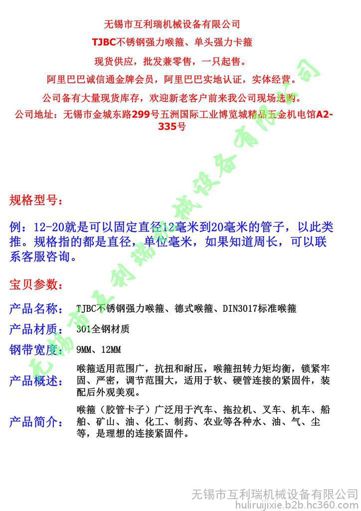 TJBC品牌301全不锈钢喉箍卡箍管夹