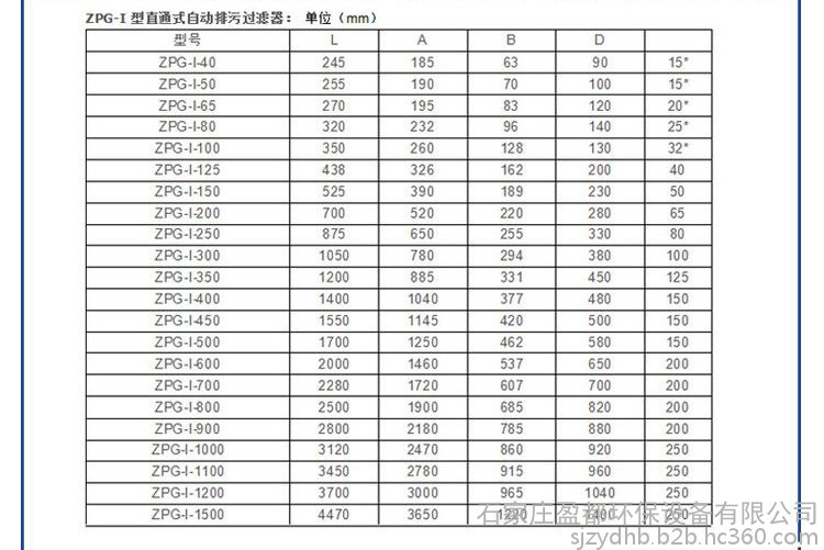 ★反冲洗过滤器技术参数: