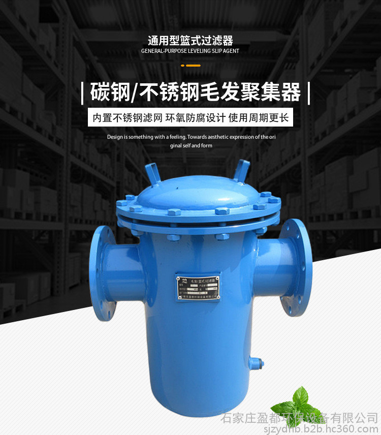 不锈钢蓝式过滤器佛山 法兰不锈钢毛发过滤器 立式直通毛发过滤器