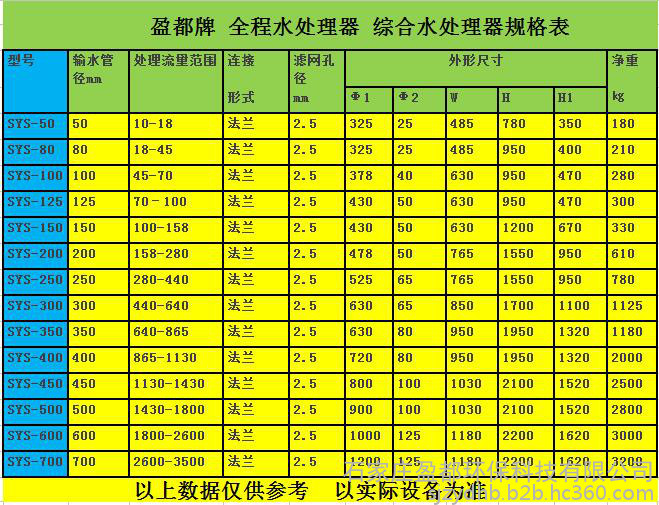 1、根据设备安装点的应用系统的管径选型。设备处理水量作为参考。