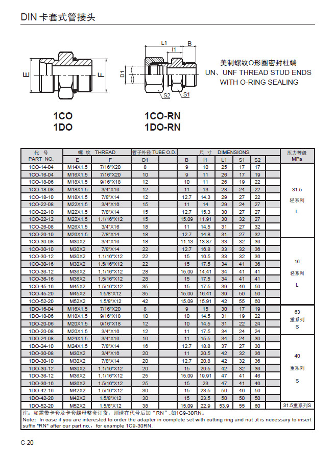 | 适用范围 | 碳钢美制螺纹O型圈密封柱端用工业机械等 |