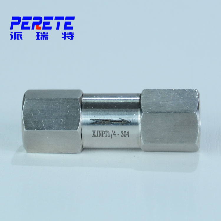 单向阀有直通式和直角式两种。直通式单向阀用螺纹连接安装在管路上。直角式单向阀有螺纹连接、板式连接和法兰连接三种形式。液控单向阀也称闭锁阀或保压阀,它与单向阀相同,用以防止油液反向流动。但在液压回路中需要油流反向流动时又可利用控制油压,打开单向阀,不锈钢高压内螺纹单向阀 304直通式单向阀 液压防腐蚀单向止回阀使油流在两个方向都可流动。液控单向阀采用锥形阀芯,因此密封性能好。在要求封闭油路时,可用此阀作为油路的单向锁紧而起保压作用。液控单向阀控制油的泄漏方式有内泄式和外泄式二种。不锈钢高压内螺纹单向阀 304直通式单向阀 液压防腐蚀单向止回阀在油流反向出口无背压的油路中可用内泄式;否则需用外泄式,以降低控制油压力。
