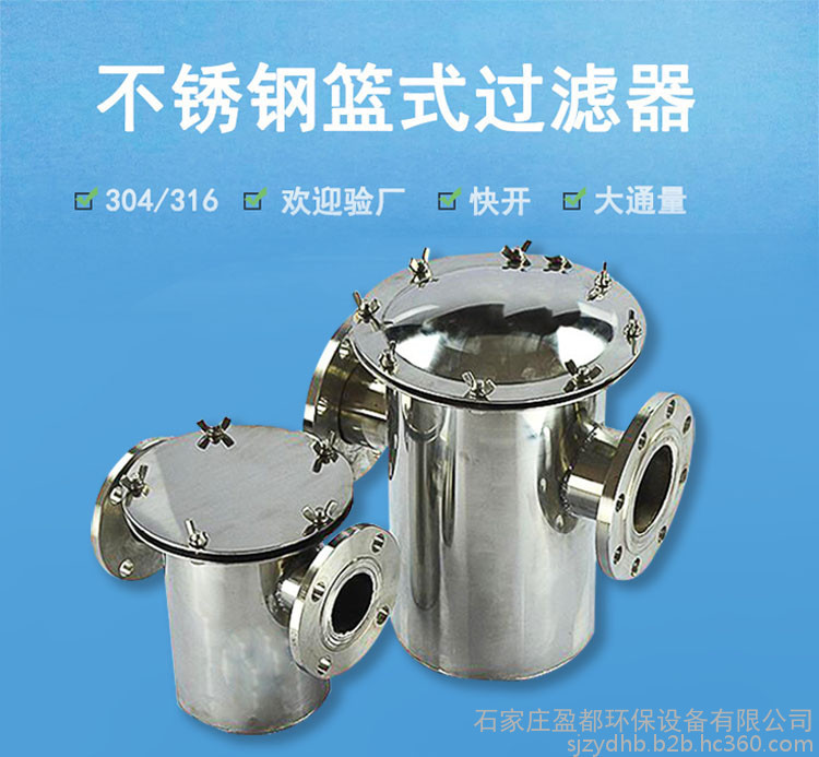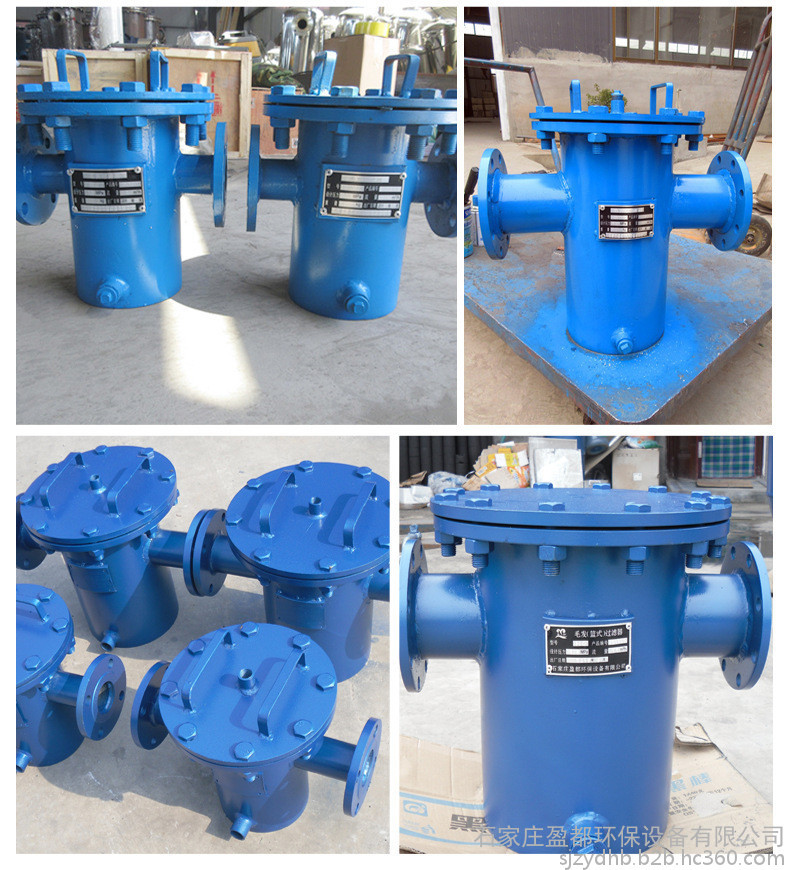 毛发过滤器(蓝式过滤器、立式直通除污器、筒式过滤器、毛发聚集器、毛发过滤器、毛发收集器、泳池过滤器)主要由接管、主管、滤蓝、法兰、法兰盖及紧固件等组成。当液体通过主管进入滤蓝后,固体杂质颗粒被阻挡在滤蓝内,而洁净的流体通过滤篮、由过滤器出口排出。当需要清洗时,旋开主管底部螺塞,排净流体,拆卸法兰盖,清洗后重新装入即可。因此,使用维护极为方便。