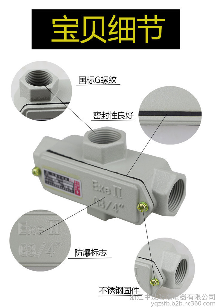 中沈防爆bah 直通防爆穿线盒bch-g3/4dn20 6分ip54 IIB级直通角通A型H型左弯右弯