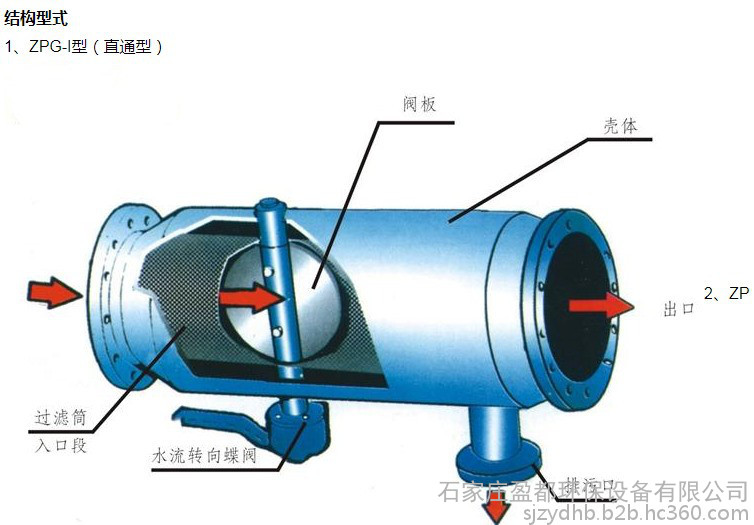 型号: ZPG-L、ZPG-I 口径范围:DN50≈DN600。 压力范围:PN10-PN40 温度范围:-40℃≈500℃。 传动方式:自动。 阀体材质:铸钢、不锈钢。 连接方式:法兰。反冲洗过滤器主要由壳体、过滤单元和水流导向阀组成。