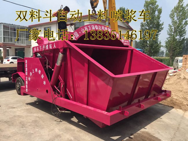 1、采用双斗设计,前斗下料,后斗上料,保证喷浆机连续不断24小时工作!
