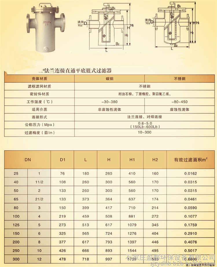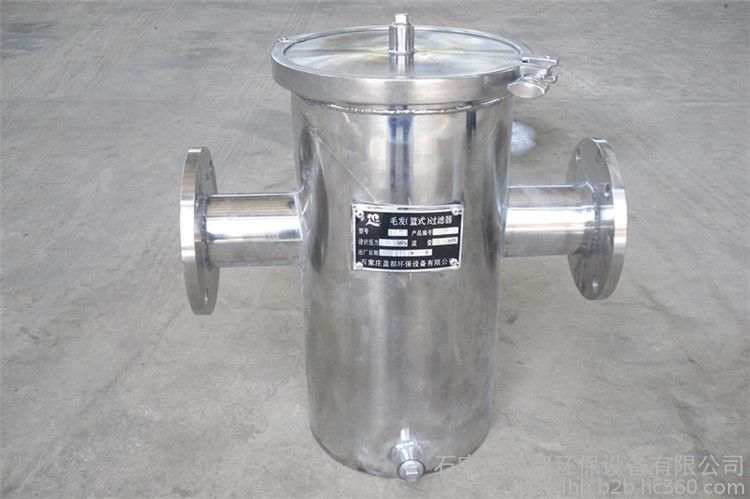 适用范围 ??在各种规模的游泳池中,配合普通清水离心泵使用。或者用于油或其它液体管道上,主要用于管道上,用来过率管道里的杂物。过滤孔面积比通径管面积大2-3倍.远远超过Y型、T型过滤器过滤面积。过滤器精度在过滤器中属于一种精度好的过滤器,滤网结构与其它过滤网不一样,主要由接管、主管、滤篮、法兰盖及紧固件等组成,当流体通过主管进入滤篮后,固体杂质颗粒被阻挡在滤篮内,而洁净的流体通过滤篮由过滤器出口排出。当需要清洗时,旋开主管底部螺塞,排净流体,拆卸法兰盖,取出滤篮。清洗后重新装入即可,因此,使用维护极为方便。
