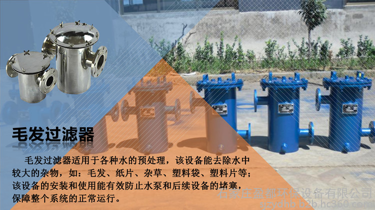YD系列毛发聚集器适用于各种水的预处理,该设备能去除水中较大的杂物,如:毛发、纸片、杂草、塑料袋、塑料片等;该设备的安装和使用能有效防止水泵和后续设备的堵塞,整个系统的正常运行。产品可以分为螺栓式和快开式开启方式,螺栓式开启方式构造紧凑,密封性能好,快开式开启方式开启便捷,方便使用,为节省人工创造了更优越的条件。