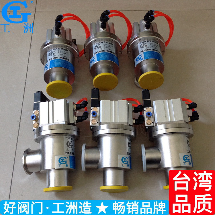 GDQ型系列气动高真空挡板阀(又称角阀)是用压缩空气为动力,通过电磁换向阀改变气路方向,推动气缸活塞上下运动,带动阀杆上下运动,使阀板开启或关闭,从而达到在真空系统中接通或切断气流的目的。GDQ-J型为角通型式,GDQ-S型为带预抽口的三通型式。适用的工作介质为空气及非腐蚀性气体。