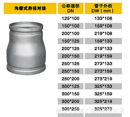 304沟槽异径直通|卫生级直通管件批发|不锈钢异径直通水管管件厂:400-863-6628;0757-29822631