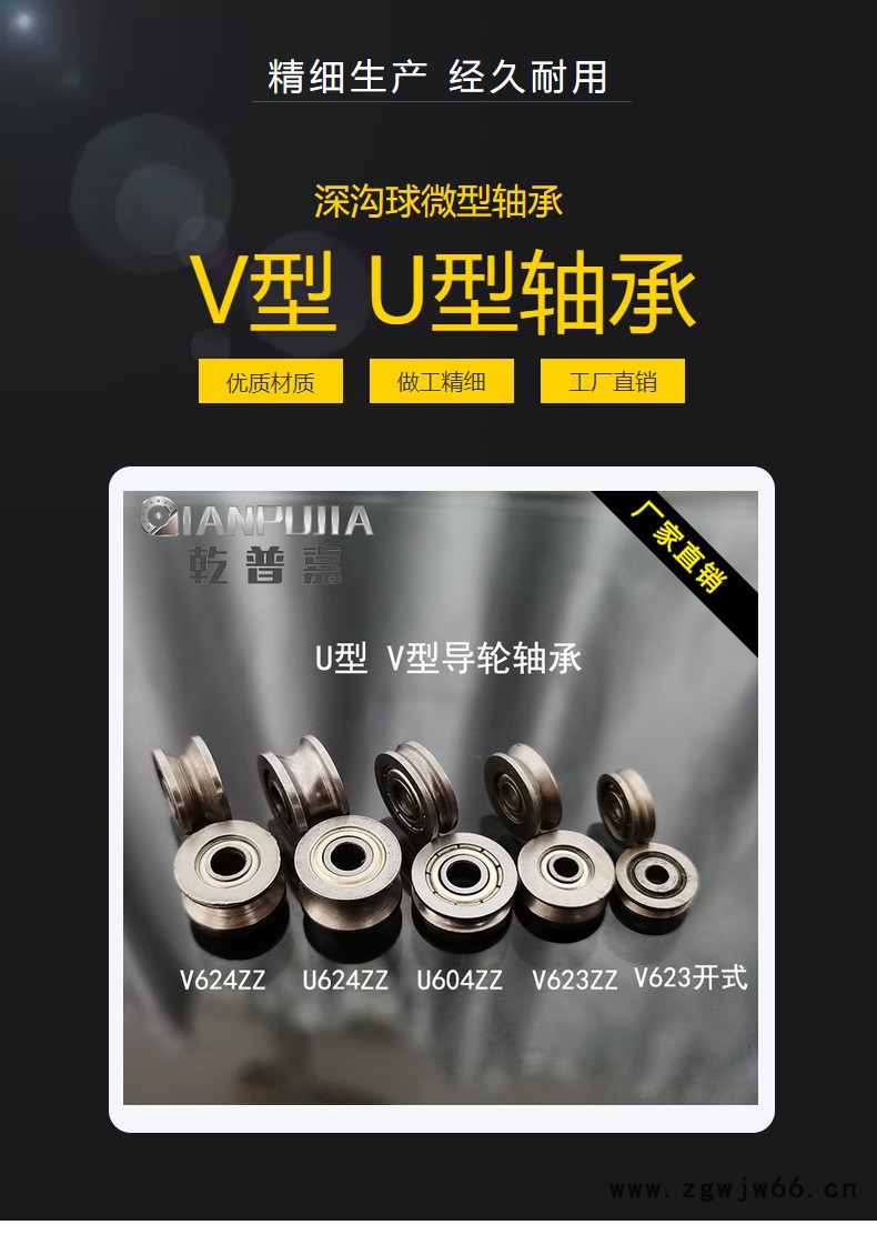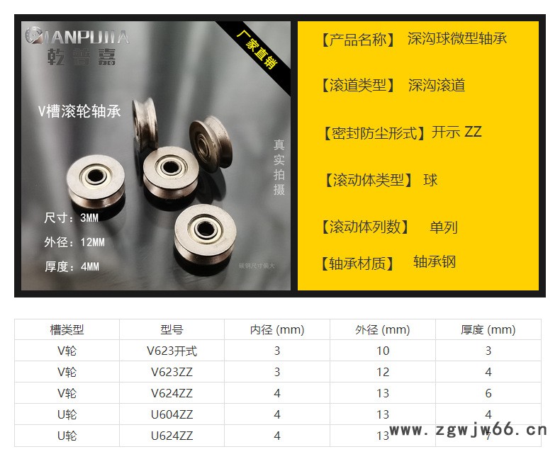 V/U型带槽轴承 走线滚轮滑轮轴承内嵌凹槽导轮导轨轴承624ZZ槽轮