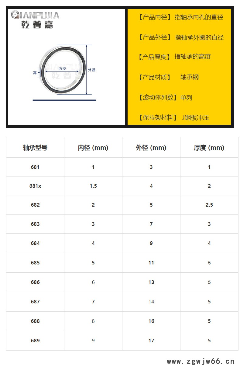 乾普嘉深沟球轴承681 682 683 684 685 686 687 689ZZ 微型小轴承