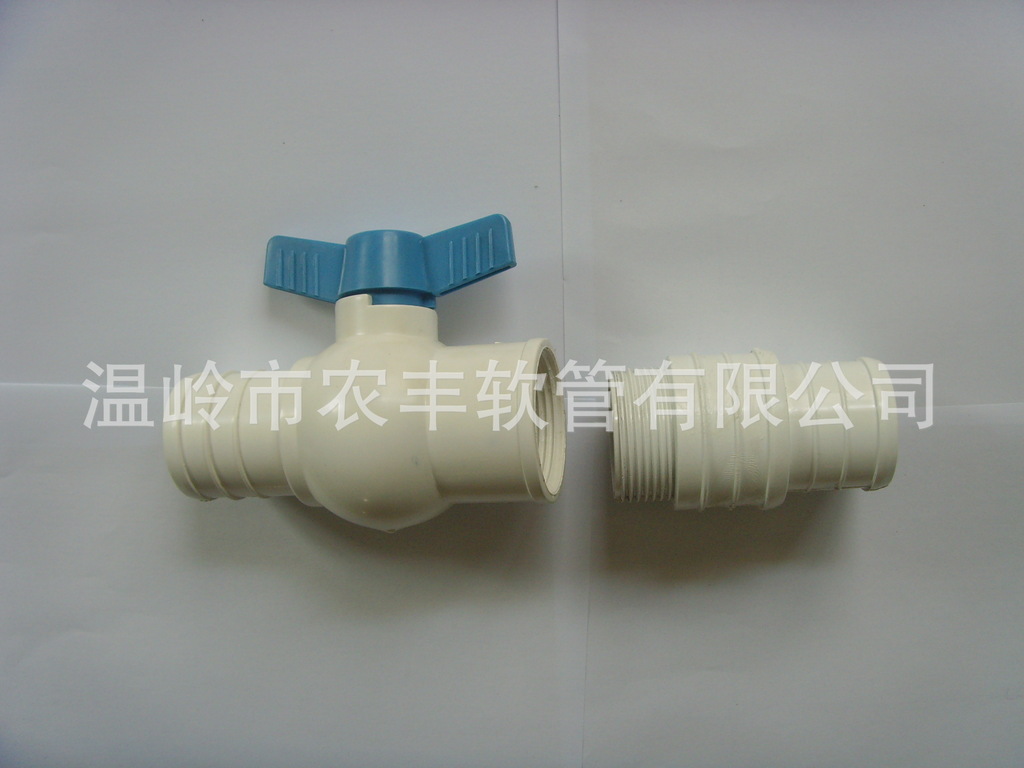 如上图:左边球阀出水直径63mm,右边接头直径为63mm,均可接接N100主管带、N100微喷带;