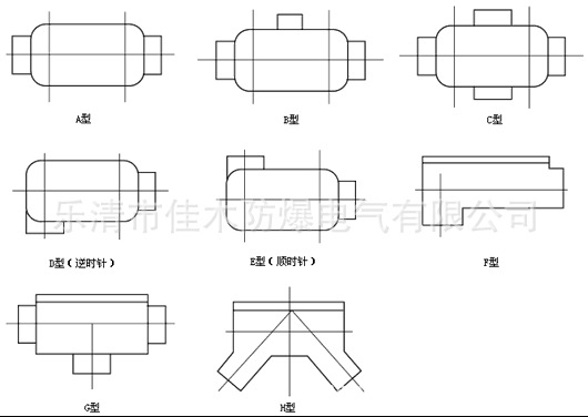 4. 拐通防爆穿线盒BHC-D G3/4"在交流50HZ、电压380V或220V的线路中,作为电线管路联接、弯曲等线路穿线之用。