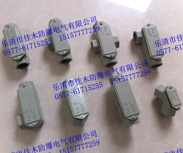 1. 防爆穿线盒从外形上分为:左弯,右弯,三通,直通,四通,后盖弯通,后盖三通。