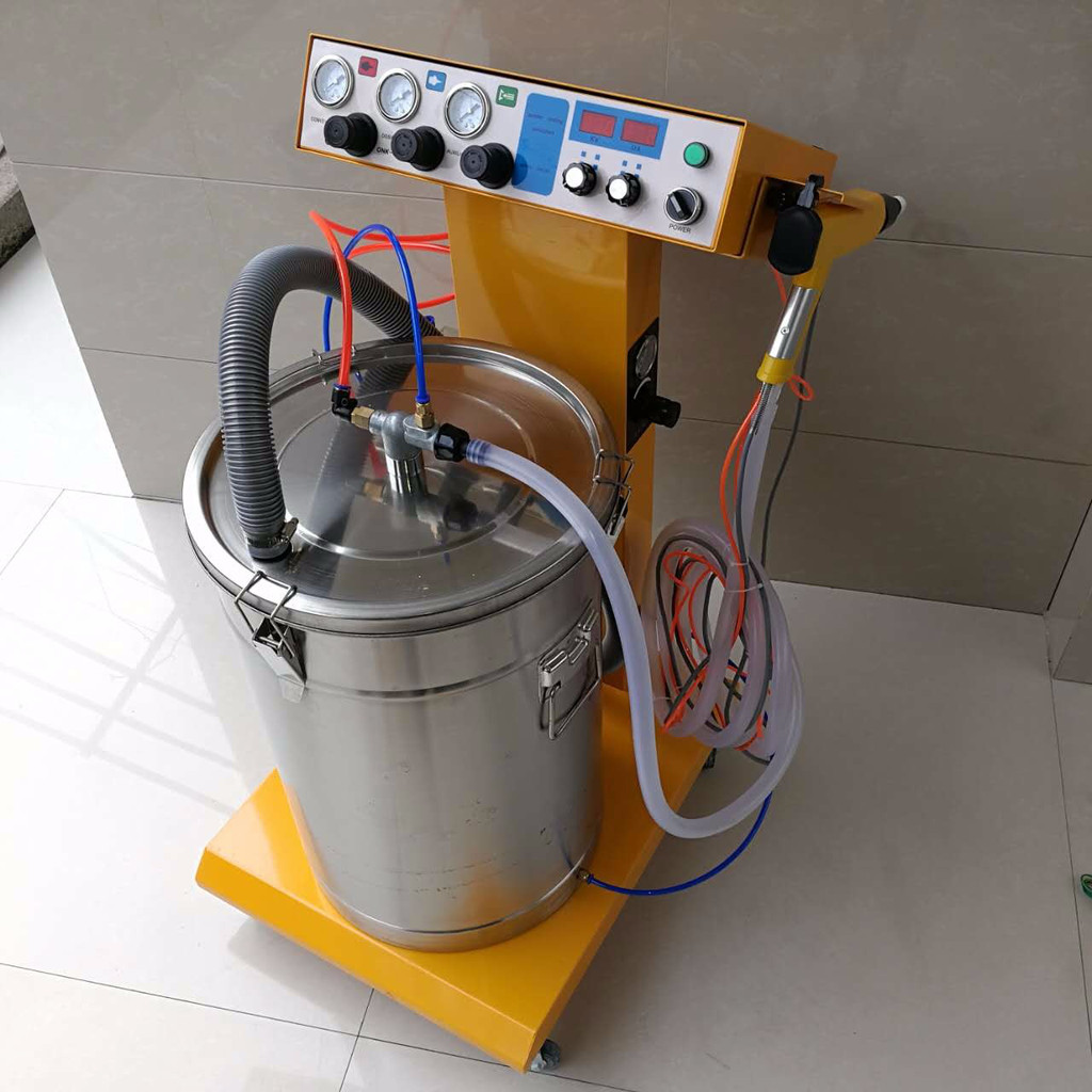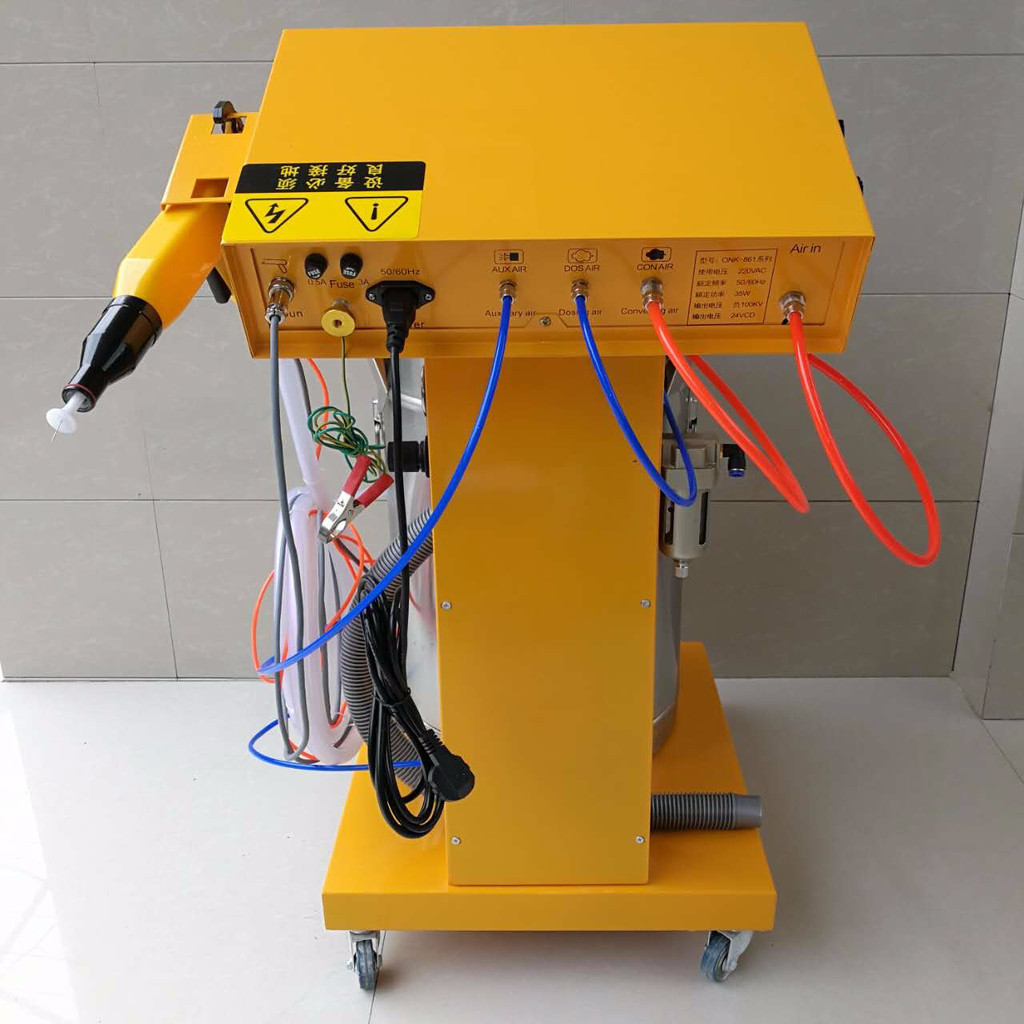 全配有:主机,喷枪,粉桶,小推车,说明书,粉泵,粉管,电源线,接地线等配件。