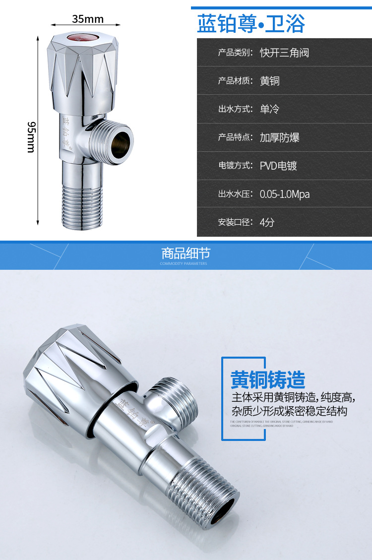 三角阀铜加厚冷热水通用三角阀止水阀马桶热水器加长角阀