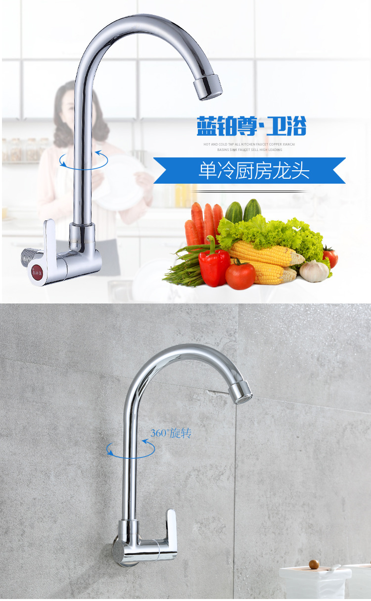 铜入墙单冷水龙头高头红冲铜角式单冷洗菜盆龙头快开龙头