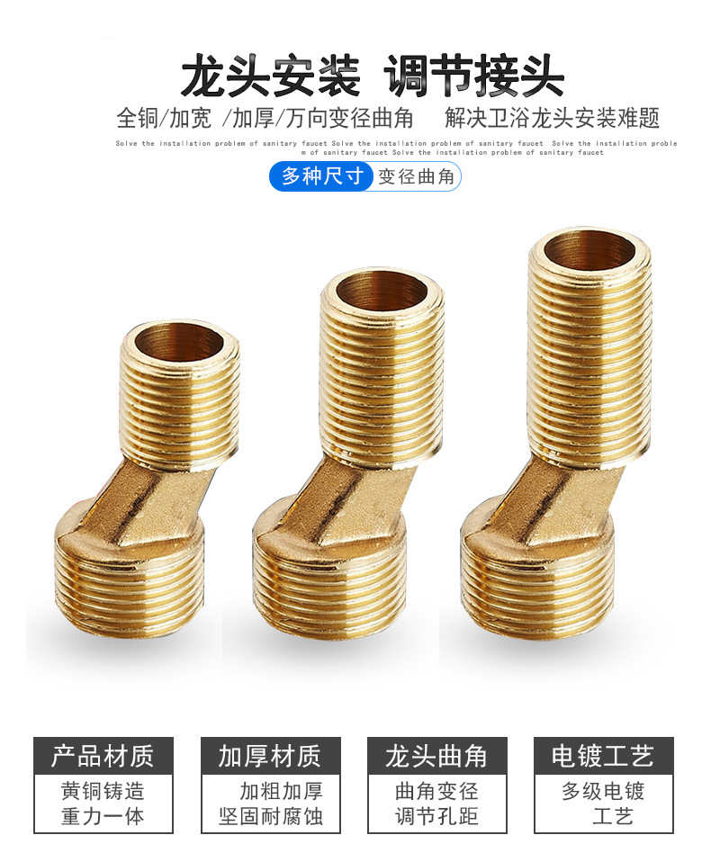 铜淋浴浴缸水龙头 混水阀距离 加大偏心弯角 变径曲脚弯脚 配件