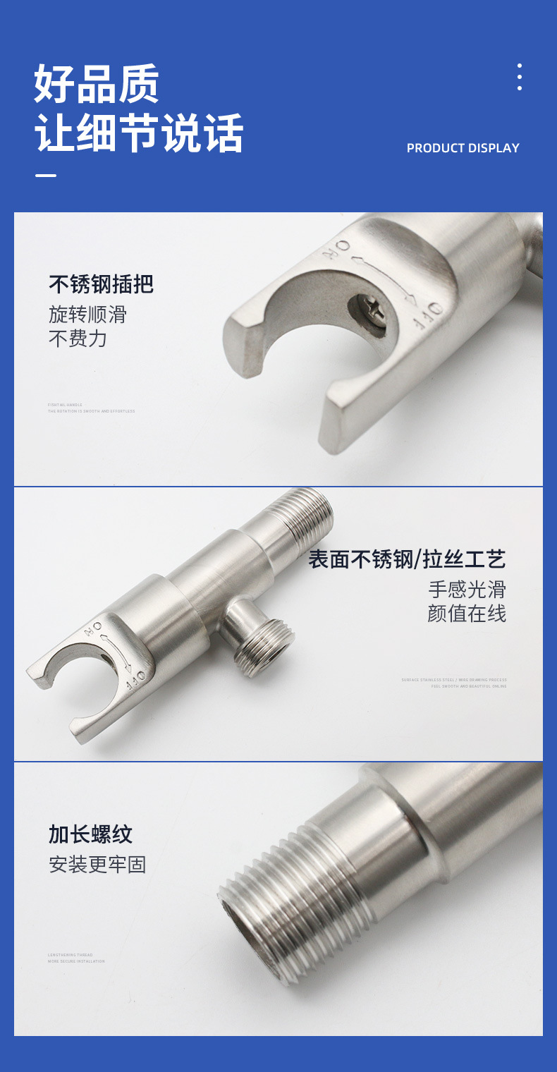 厂家供应304不锈钢插把角阀 马桶进水止水阀热水器配件角阀定制