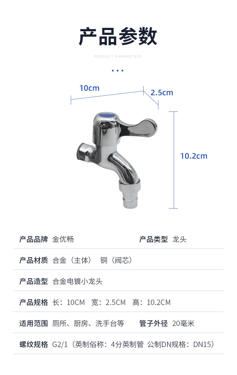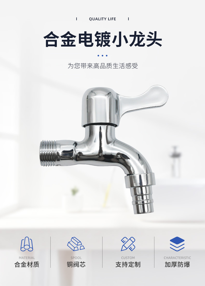 简约单冷合金电镀水龙头 洗衣机厕所4分快开铜阀芯单冷水龙头