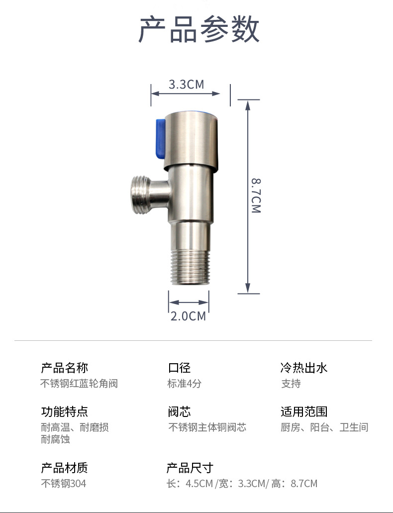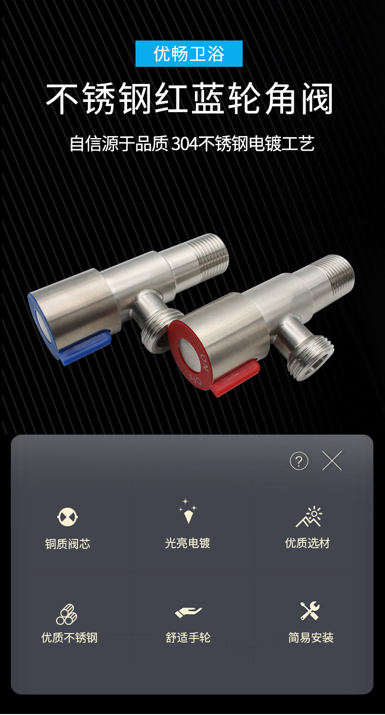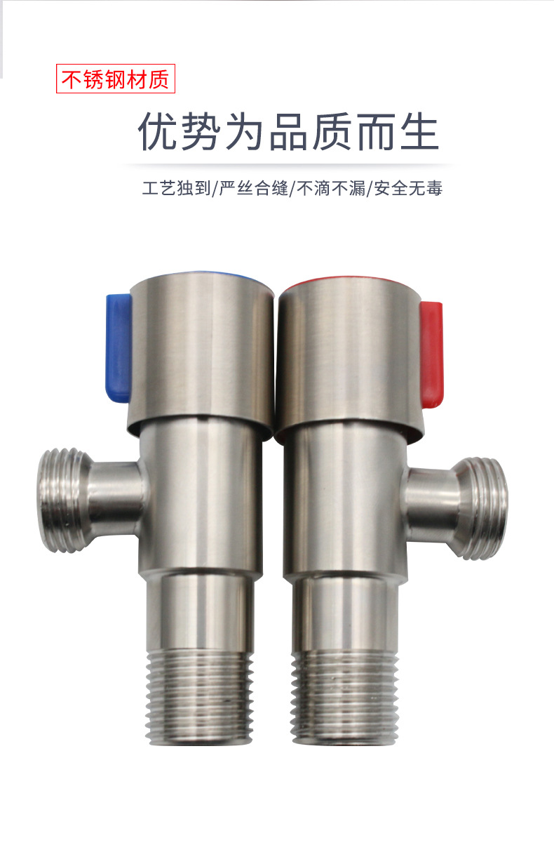 马桶热水器专用三角阀止水阀 冷热水进出不锈钢红蓝轮角阀供应