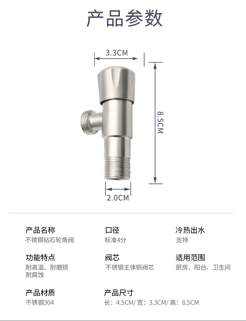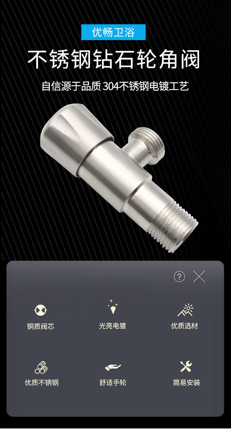 厂家供应冷热进水不锈钢钻石角阀 卫浴洁具马桶热水器角阀止水阀