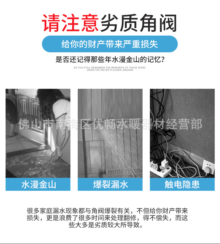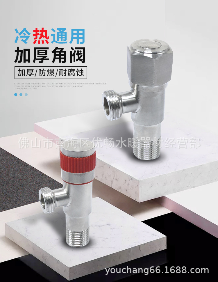 马桶热水器专用三角阀止水阀 冷热水进出不锈钢红蓝轮角阀供应