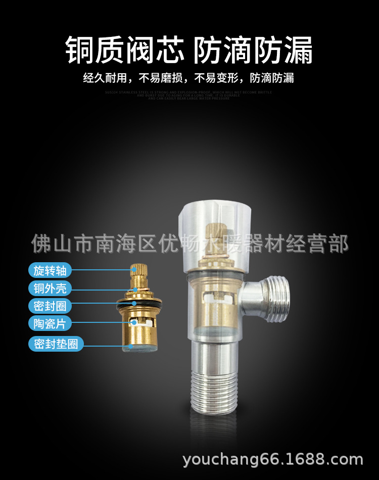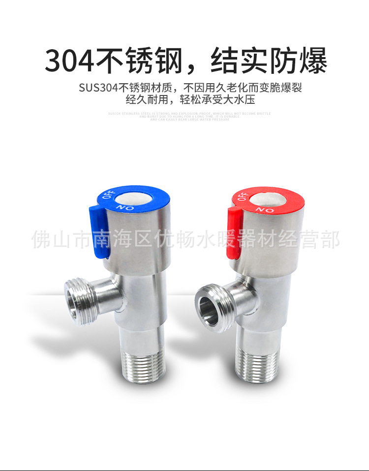 厂家供应水暖配件304不锈钢冲压把手角阀 冷热水铜芯三角阀止水阀