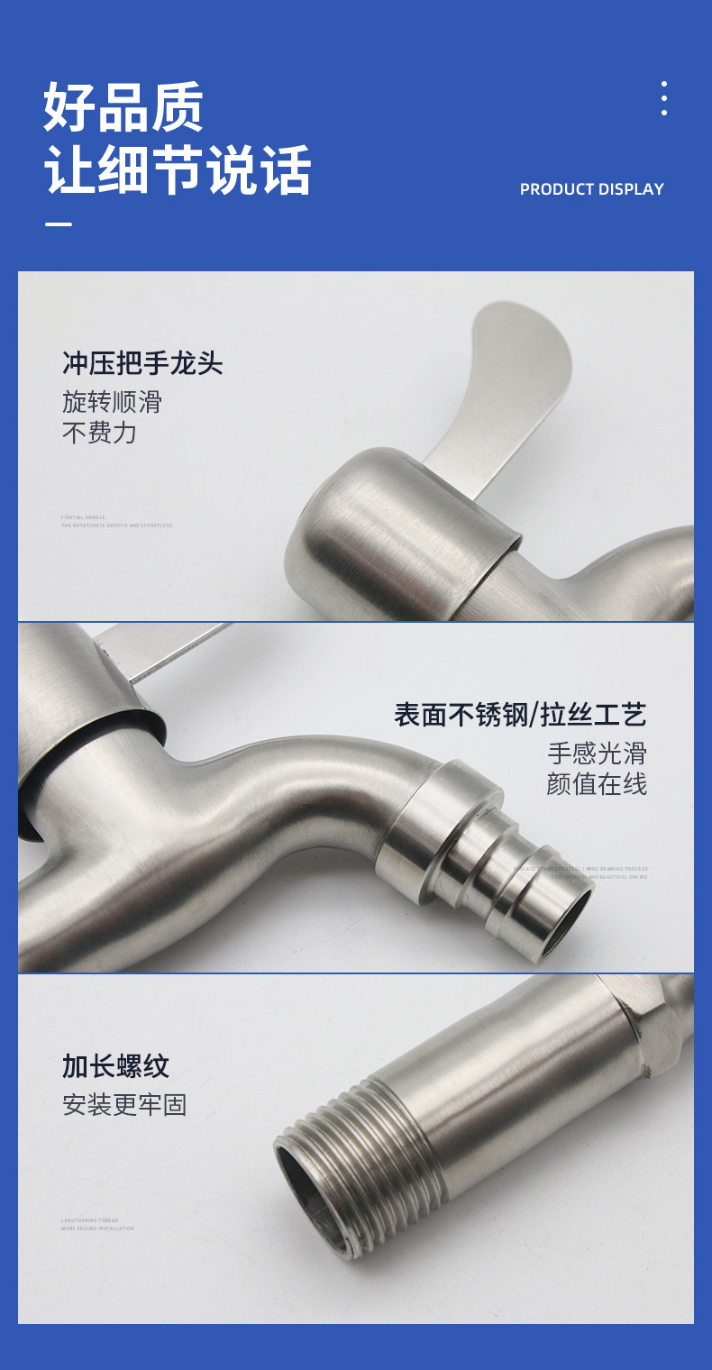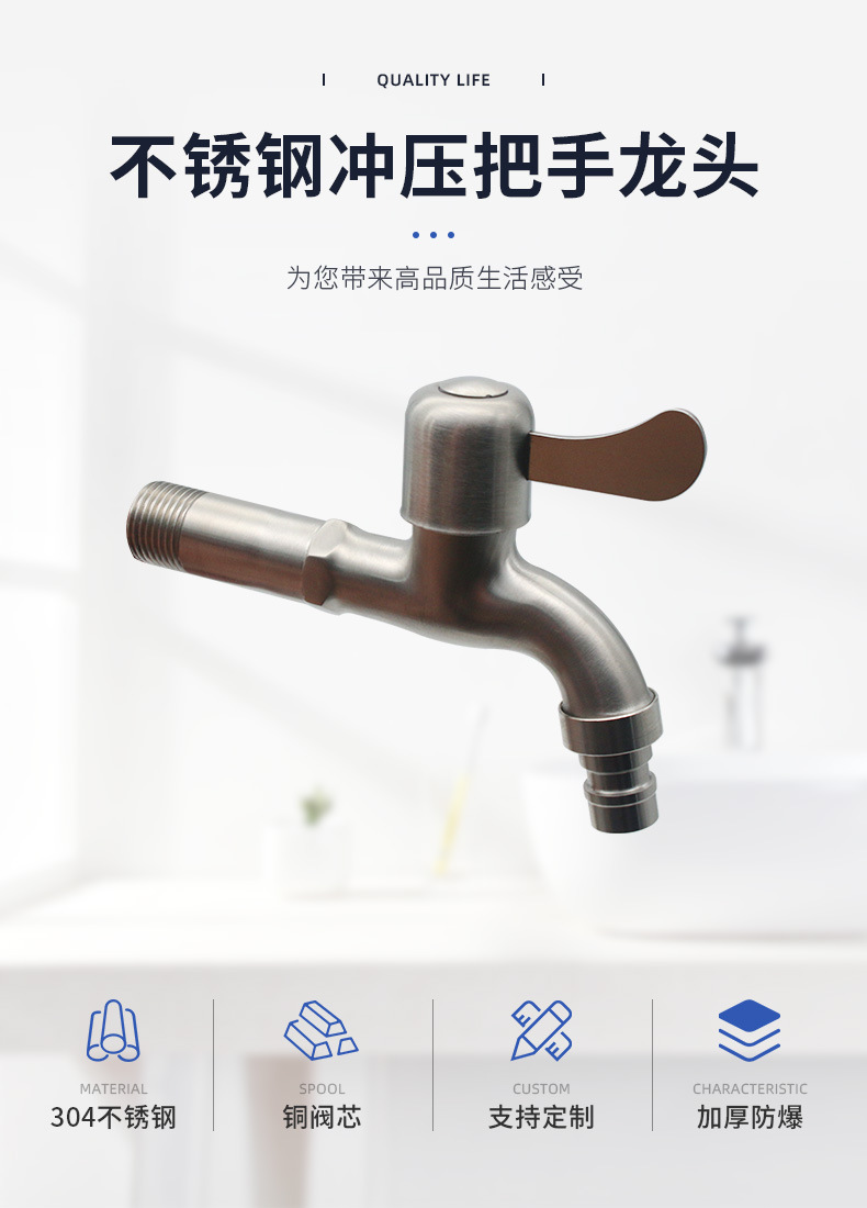 源头厂家不锈钢304 加长洗衣机水龙头 14公分快开龙头拖把池水咀