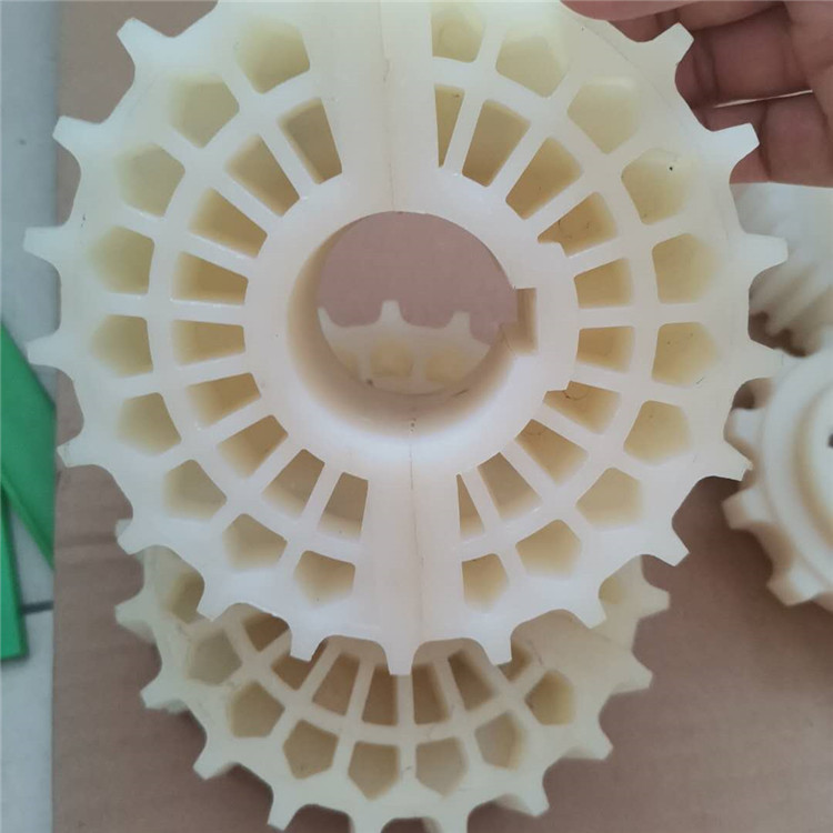 尼龙具有良好的综合性能,包括力学性能、耐热性、耐磨损性、耐化学药品性和自润滑性,且摩擦系数低,有一定的阻燃性,易于加工,适于用玻璃纤维和其它填料填充增强改性,提高性能和扩大应用范围,其次其过载保护功能,当扭矩过大,齿轮本身损坏,动力传动中断从而保护下级装置或人生安全,减少损失。