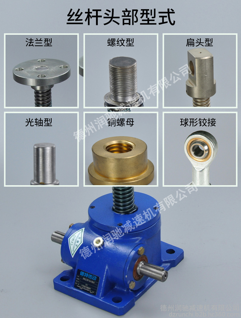 德州润驰传动,是国内一家专业从事丝杆升降机、螺旋丝杠升降机、滚珠丝杠升降机、蜗轮丝杆升降机、摆动式丝杆升降机、伺服电动缸、太阳能回转减速机、电动推杆、转向箱系列产品的合格供应商。是山东地区重型、大吨位丝杆升降机生产基地。公司技术力量雄厚,检测手段完善,引进铜轮光谱检测仪,哈量齿轮检测中心,减速机功率测试台,保证产品出厂前,均有严格的化验报告,检验合格证。公司拥有数控包络专机4台,二次包络专机18台,大型Y31125滚齿机5台,大型Y31200滚齿机2台,中捷T6118镗床6台,精密数控机床28台,立式VS-1170加工中心18台,其余各类加工设备130多台,新引进汉江S7732蜗杆磨床8台,精度可达5级,另可承接各种蜗轮丝杆升降机、电动推杆、转向箱、螺旋升降机、回转减速机的设计制造和进口升降机的国产化设计改造工程。欢迎各地朋友致电咨询,竭诚为您服务。