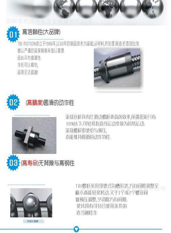 台湾原装TBI滚珠丝杆丨扎制丝杆丨研磨丝杆是工具机和机械设备常用传动元件,特别具备以下优点: