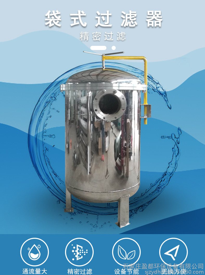 袋式过滤器一种结构新颖、体积小、操作简便灵活、节能、密闭工作、适用性强的多用途过滤设备。袋式过滤器是一种新型的过滤系统。袋式过滤器内部由金属网篮支撑滤袋,液体由入口流进,经滤袋过滤后从出口流出,杂质拦截在滤袋中,更换滤袋后可继续使用。