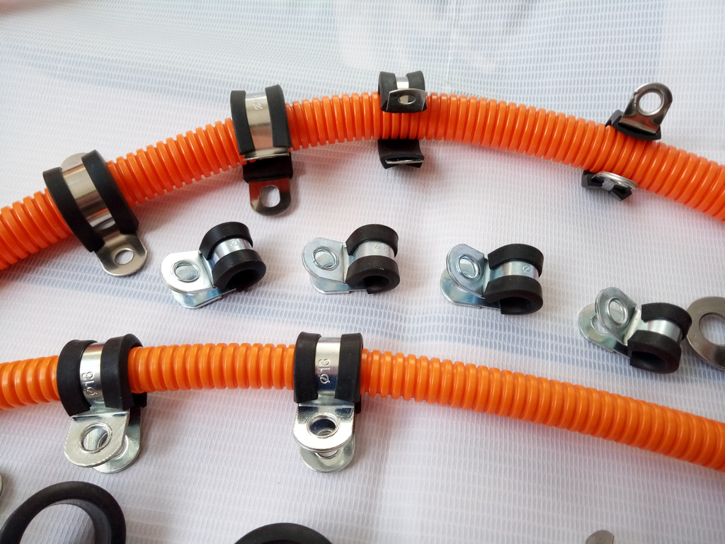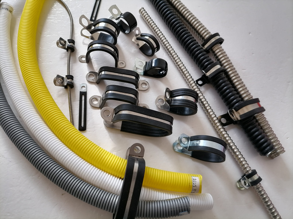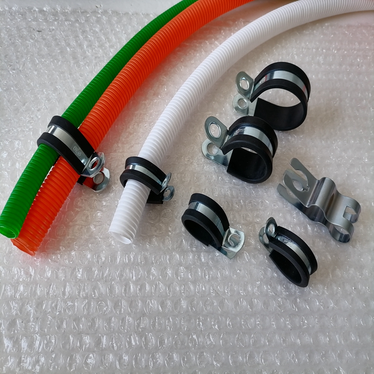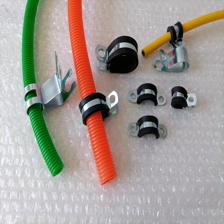 R型管卡线夹用途:电线电缆、管件、金属软管、波纹管等紧固用产品,外包橡胶垫,紧固不受外力磨损及绝缘。