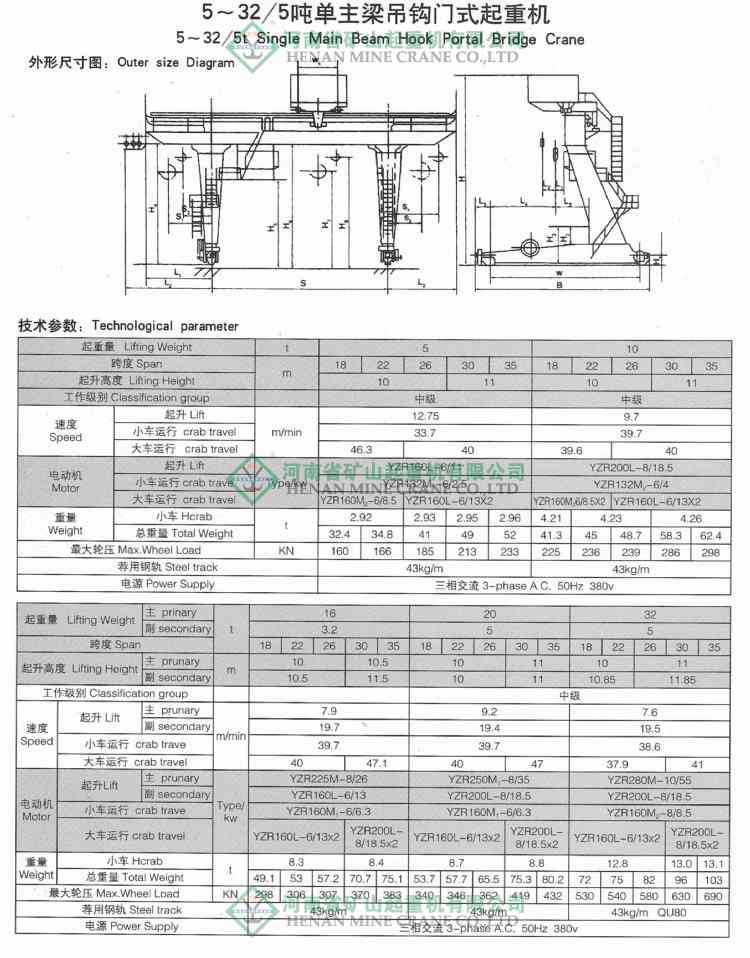 1、门架采用箱形单主梁,L型单支腿焊接结构。既增大了作业空间,又便于运输安装与维修。