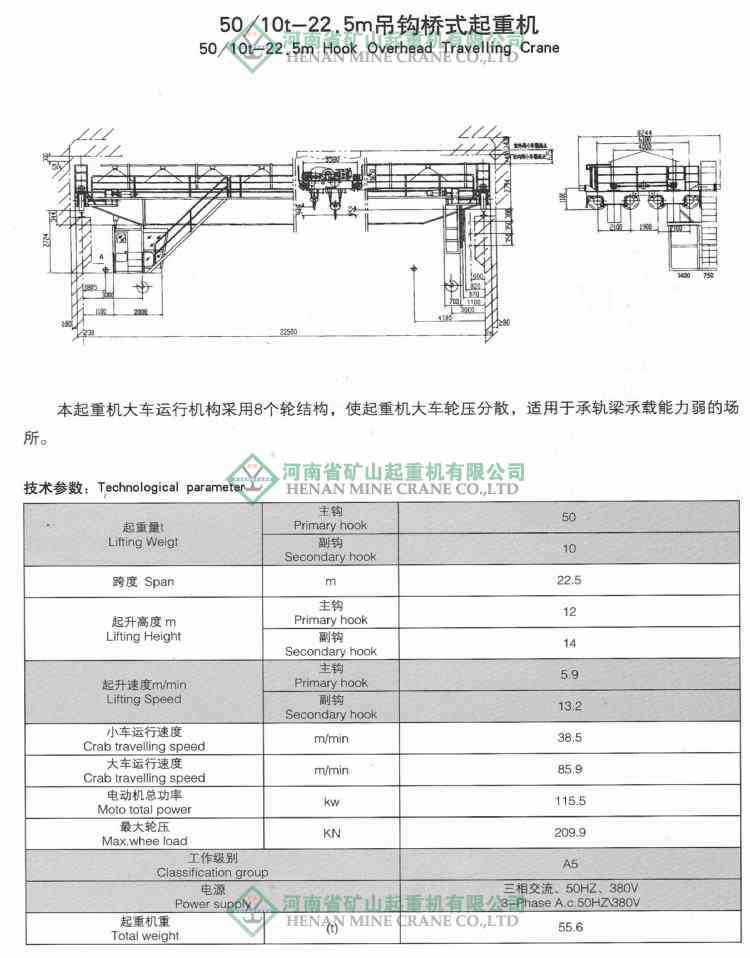 河南省矿山起重机有限公司,主要从事“矿源”牌电动葫芦、单、双梁起重机、桥、门式等五大系列80个品种起重机的制造、销售。公司占地面积68万平方米,员工2700余人,年销售额23亿元,拥有380余家销售服务机构辐射国内外,拥有中**公称技术人员180余人,同行业综合实力全国排名第三位。