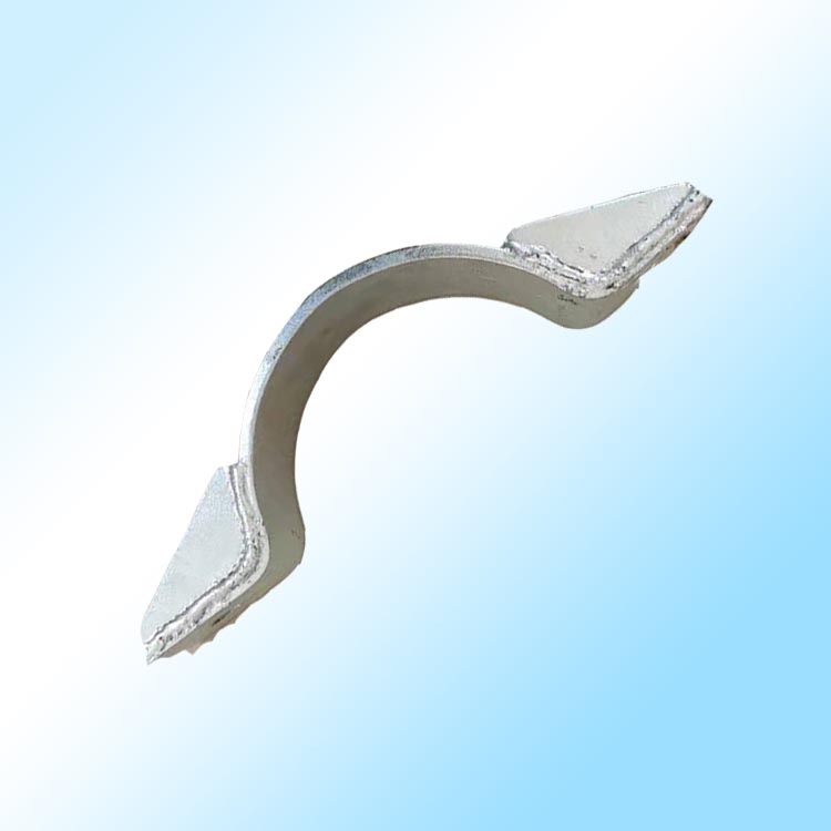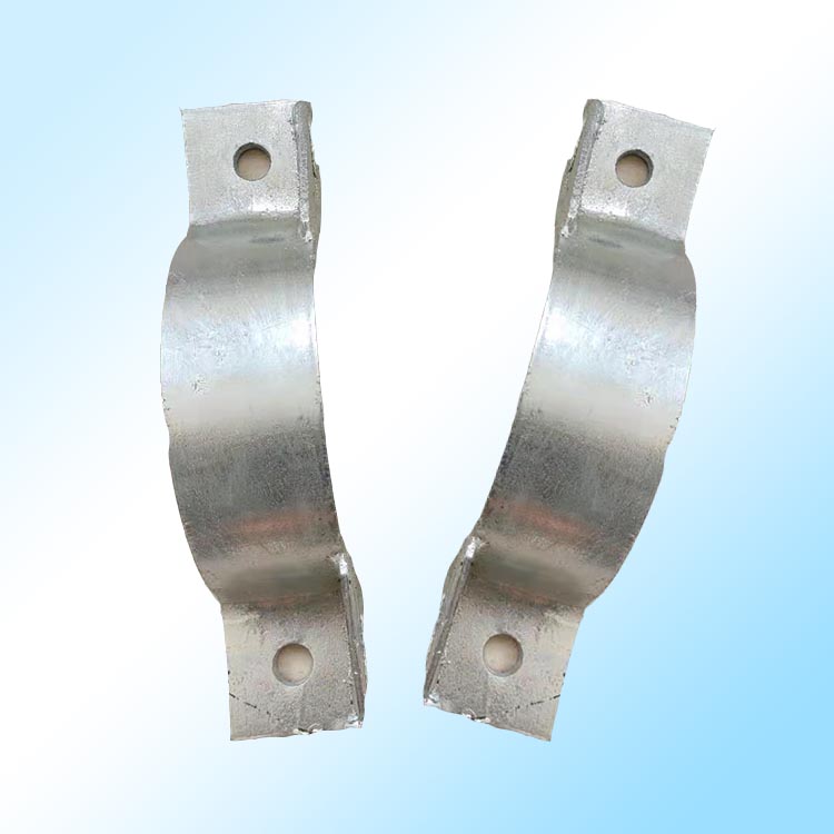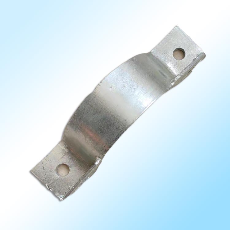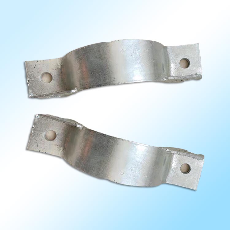 抱箍是一种常见的构件,其多箍设于电杆上,用于固定拉线等,加强型抱箍**是其中的一种,人们在折弯耳上设置加强筋,加大了抱箍折弯耳部分的抗弯强度,但是现有的加强型抱箍在安装时多有不便,安装人员位于电杆上,属于高空作业,行动受限,在此种情况下安装人员依然需要一手把持抱箍避免抱箍在电杆上滑落另一手安装螺栓和初步旋拧螺母,操作困难,大大影响了抱箍的安装速度。