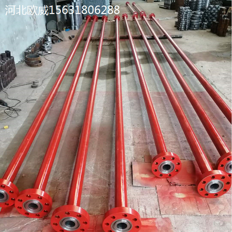 高压直管:用**合金钢制造,端部为由壬连接,高压直管规格有1”,2”,3”和4”,冷工作压力为42MPa到105MPa(6000psi~15000psi)高压直管有普通整体式高压直管,带挡肩的整体式高压直管,分体式高压直管,长度根据客户需求。
