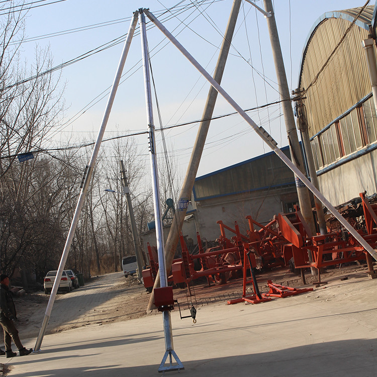 铝合金立杆机由三根杆组成,所以又被称为三脚立杆机或三脚架立杆机。