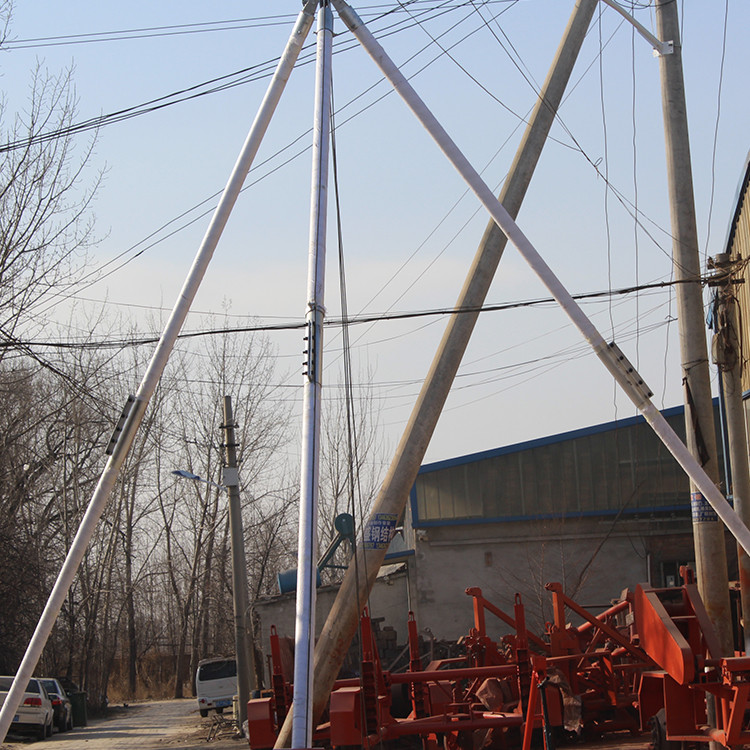 2、立杆机组装、拆卸方便,利用三角型稳定性,不用打地锚,即可轻松立杆。