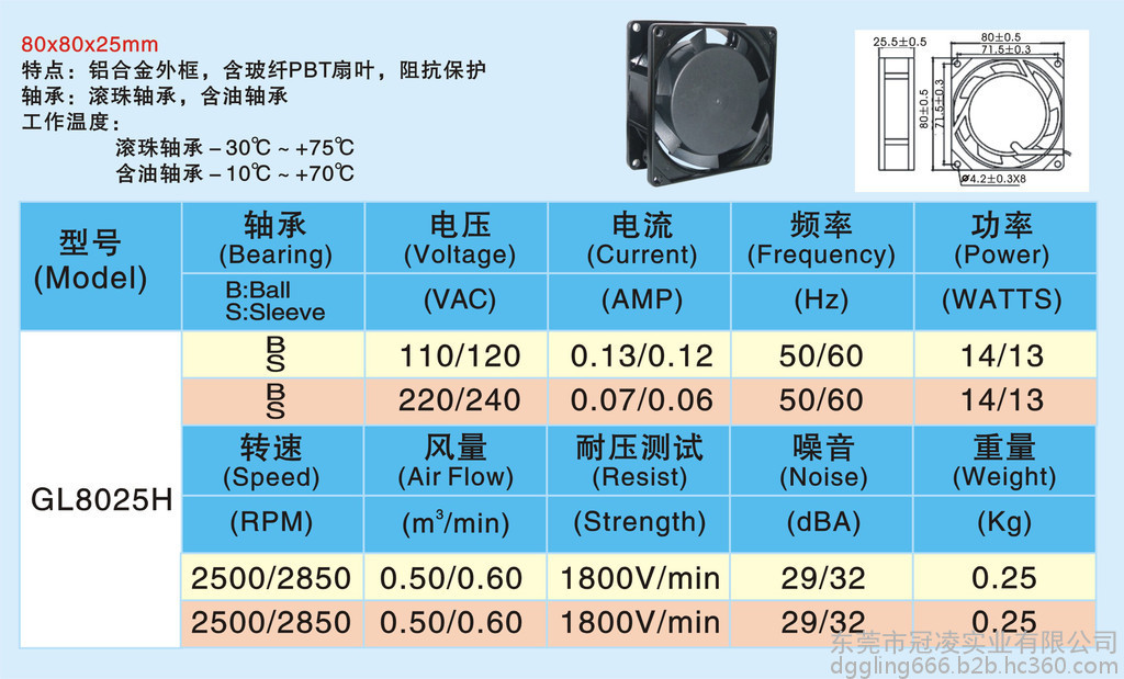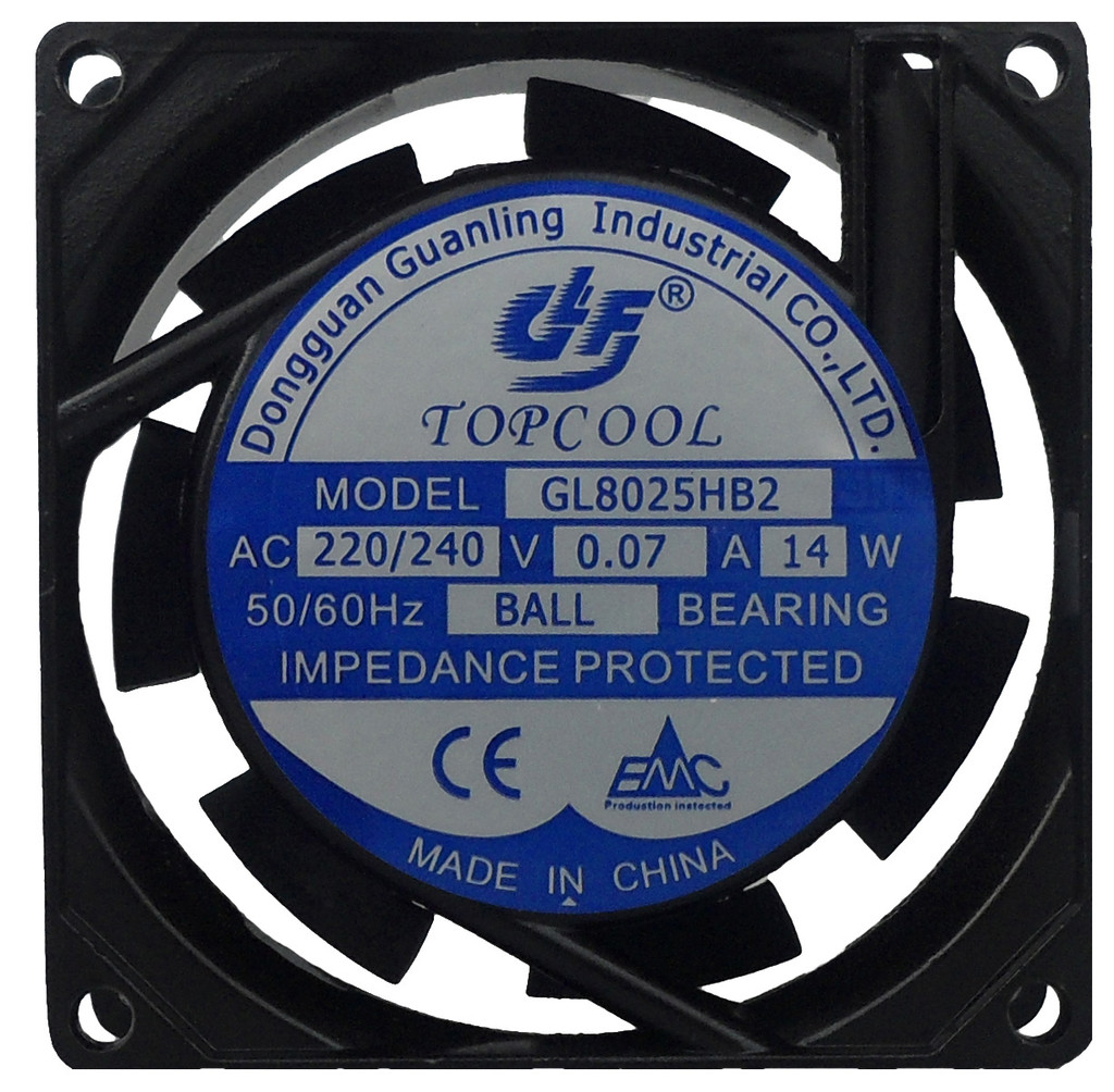 GL8025H (80*80*25mm) AC220V滚珠风机正面