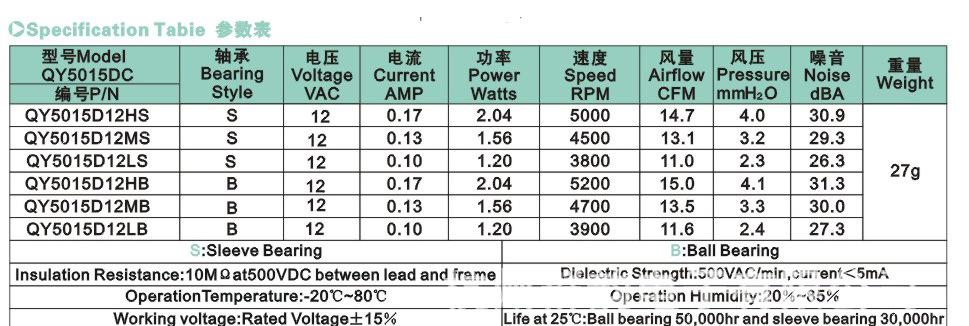 | 风扇轴承分类 |