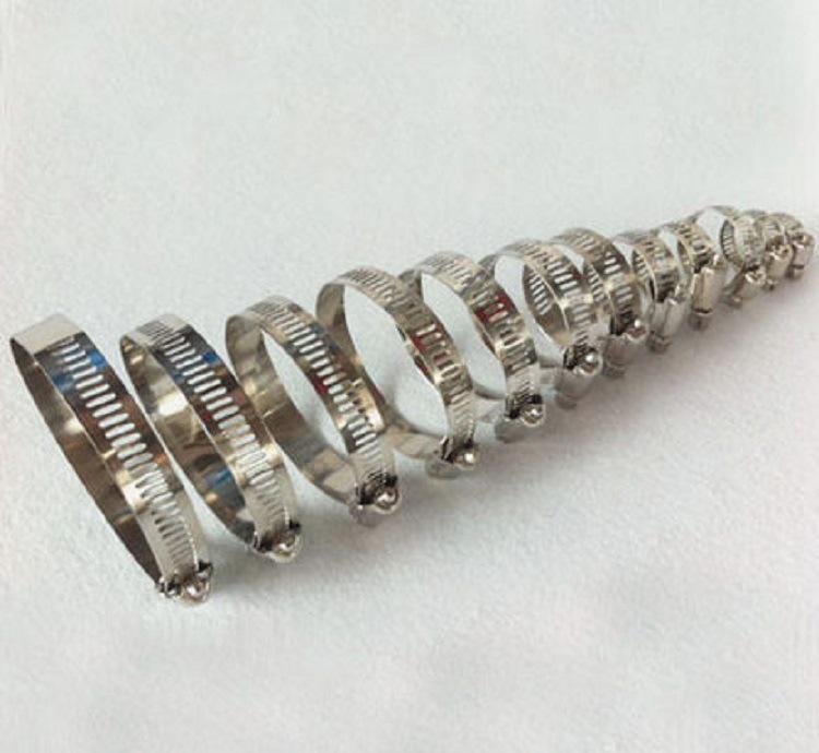 喉箍东西比较小,价值也非常小,但是喉箍的作用是巨大的。喉箍(胶管卡子)广泛用于汽车、拖拉机、叉车、机车、船舶、矿山、石油、化工、制药、农业等各种水、油、汽、尘等,是理想的连接紧固件。喉箍主要大致分为英式、美式、德式三种,另外还有管束、欧标喉箍等其他衍生产品。其中美式喉箍,也称为卡箍。美式不锈钢喉箍:分为小美式喉箍和大美式喉箍,喉箍带宽分别为12.7mm和14.2mm。采用透孔工艺,喉箍适用范围广,抗扭和耐压,喉箍扭转力矩均衡,锁紧牢固,严密,调节范围大,适用于30mm以上的软硬管连接的紧固件,装配后外观美观。特点:蜗杆摩擦力小,适用于中**车型、抱杆类设备或防腐材料部位连接。