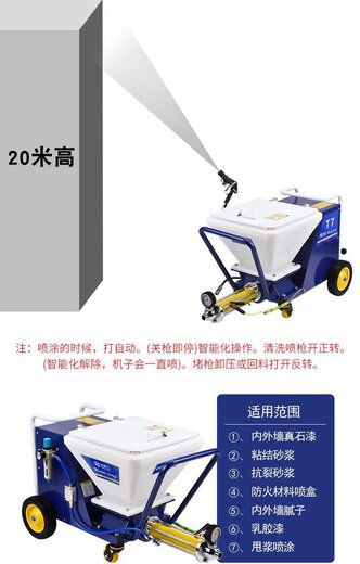 适用范围;内外墙真石漆,粘结砂浆,抗裂砂浆,防水材料,防火材料喷涂,内外墙腻子,乳胶漆,甩浆喷涂