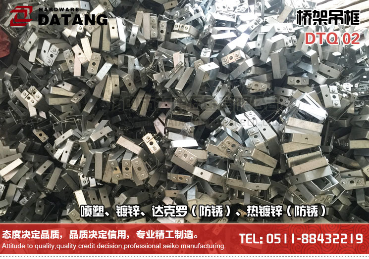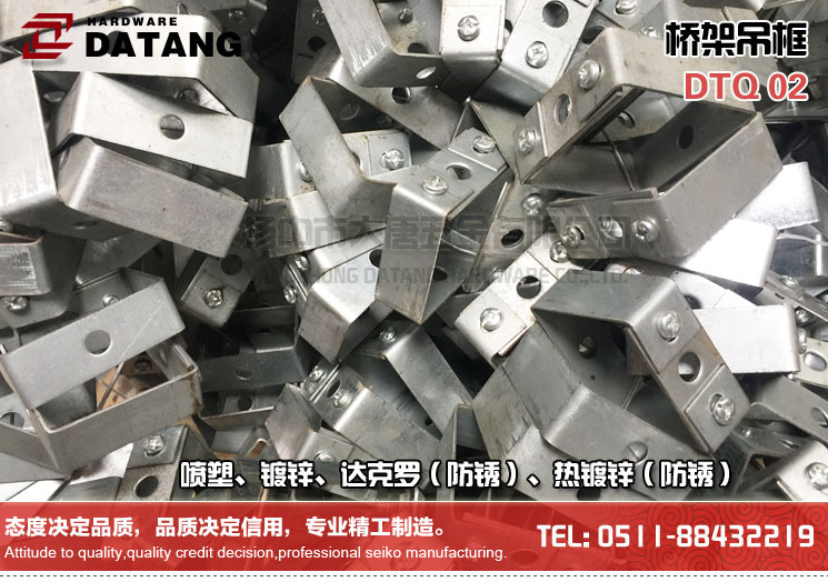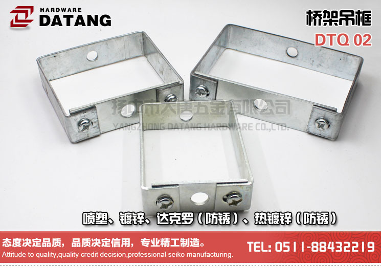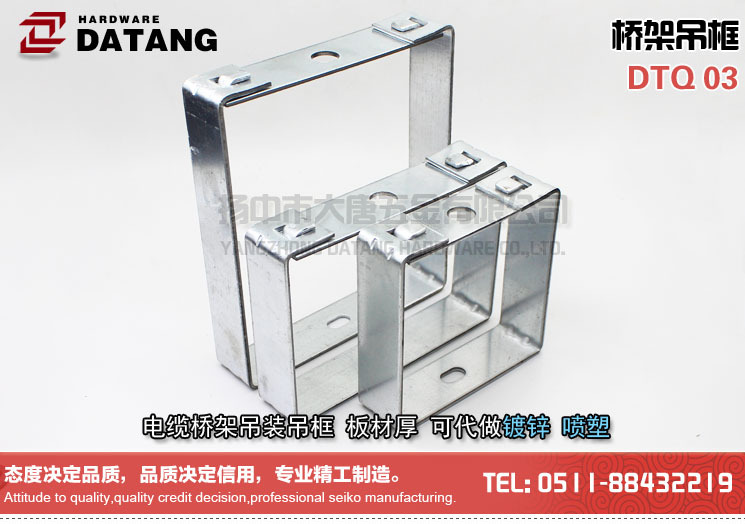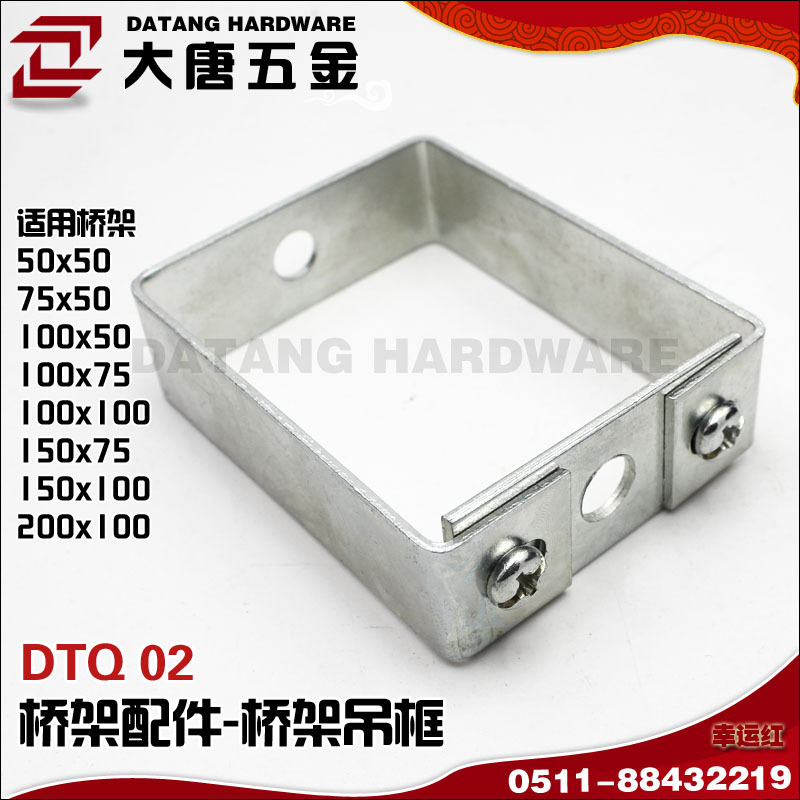 名称:桥架吊框 货号:DTQ02型 规格:50*50、75*50、100*50、100*100、150*75、150*100、200*100。 表面处理: 本色、镀锌、喷塑、热镀锌(防锈) 适用桥架安装方式:水平桥架吊装