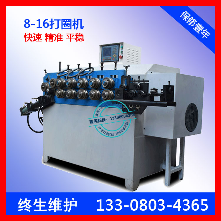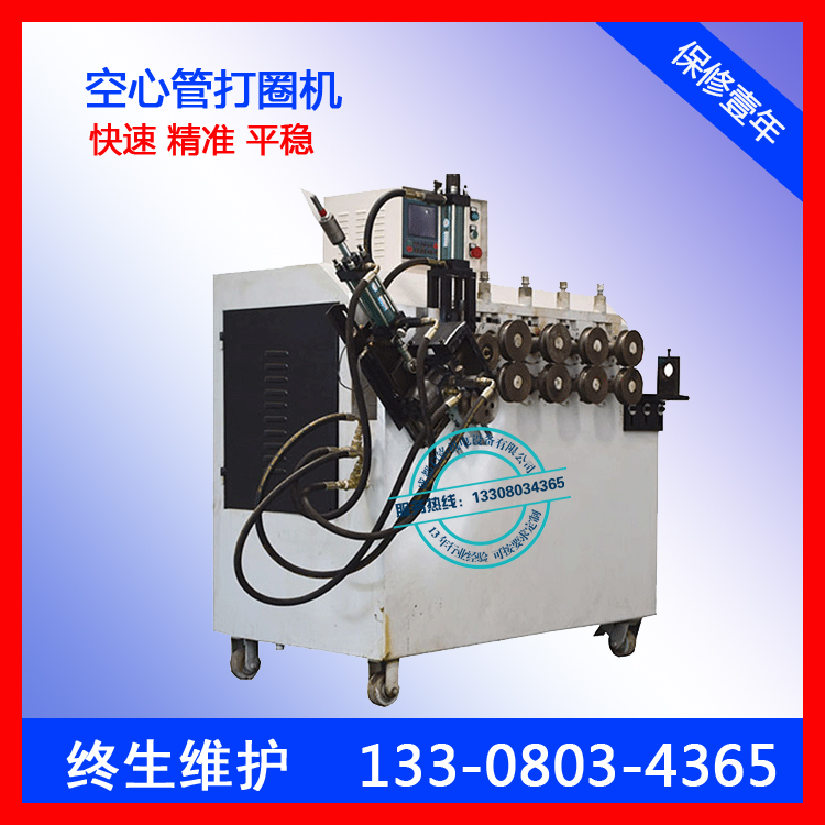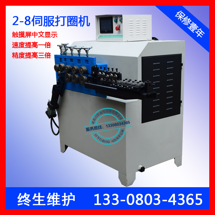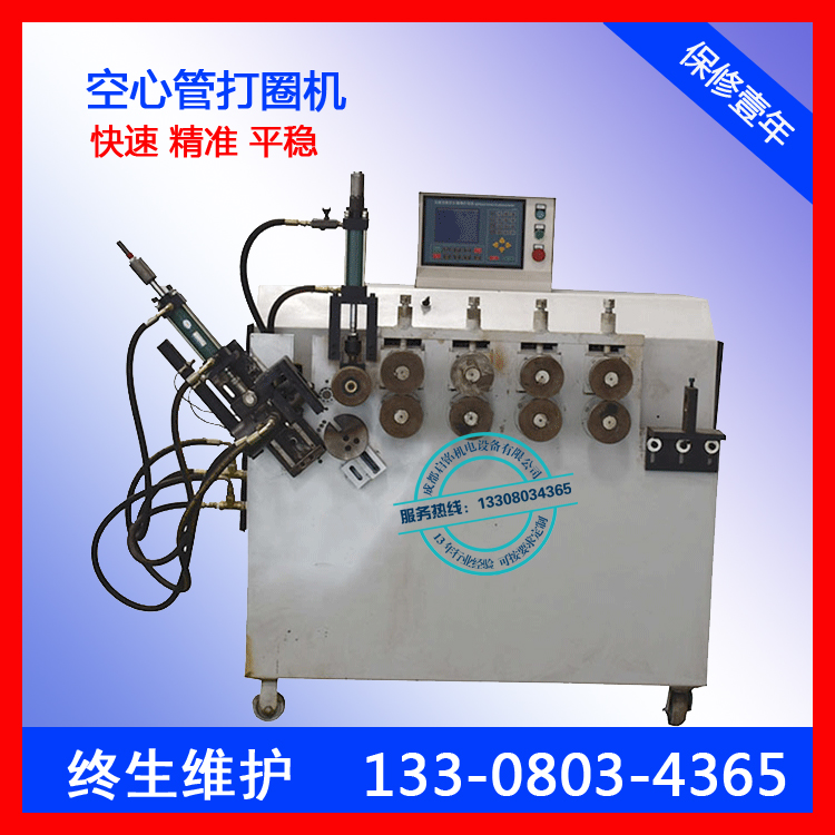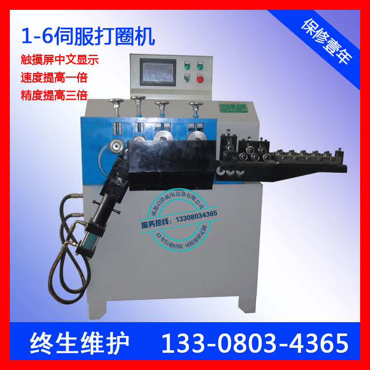 2、全自动打圈机控制器为我公司自主设计生产,采用单片机集成控制,触摸式开关任意调节参数,15种参数存储功能,数学显示,节省时间,方便管理,提高生产效率。