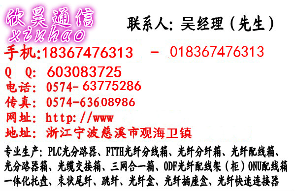 电气性能 连接器衰减(插入、互换、重复) ≤0.3dB; 回波损耗:APC型 ≥60dB,UPC 型 ≥50dB,PC型 ≥40dB; 高压防护接地装置: 绝缘电阻: ≥1000MΩ/500V(直流)。 耐电压: ≥3000V(直流)/1min,不击穿、无飞弧。 接地线截面积:>6mm2 ,接地处有明显的接地标志。 各种接头端接方便,安装灵活。 有抽屉式和固定式等多种规格; 模块化光纤配线箱端接更方便,使用更灵活; 支持各种光纤连接头的管理,如SC、LC、ST、MT-RJ等; 在1U的空间**多可端接48芯LC或MT-RJ(24个双口LC或24个MT-RJ)光纤连接头; 密闭管理; 前面操作,安装迅速方便; 高度1U,内置两组光纤盘绕环; 凹入隐藏式或者齐平镶嵌式安装